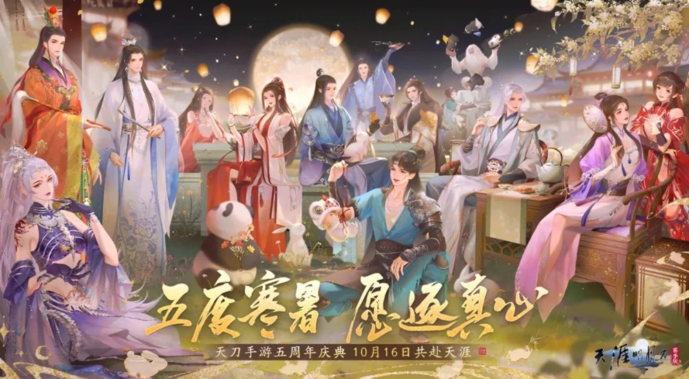 恰五周年盛典与中秋佳节浪漫相逢,刀刀特备厚礼、丰富玩法与真挚祝福,只想给每一位少侠最好的,愿此后并肩踏遍更辽远的江湖新程!亦热忱欢迎新少侠、老朋友一同踏入这片江湖,开启侠义篇章~